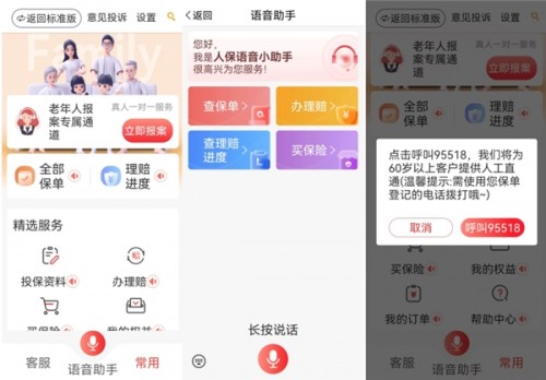 “人保APP关爱版的理赔就很好”,王阿姨说,“按一下这个‘老年报案专属通’,就能跳过层层语音菜单,直接转接人工客服,不用和智能客服较劲了”。记者测试后发现,关爱版通道的客服人员会特意放慢说话速度,一步步引导操作,从点击按钮到接通人工坐席,平均只要28秒,大大减少了老人在电话这头的等待和不安。