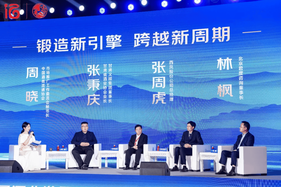 在以“锻造新引擎,跨越新周期”为主题的圆桌论坛上,中国酒类流通协会市场推广专业委员会秘书长周晓,甘肃省酒业协会会长、甘肃义顺集团董事长张秉庆,西凤股份公司总经理张周虎及北京君度卓越咨询董事长林枫共同围绕行业新周期特征与破局路径进行对话。
